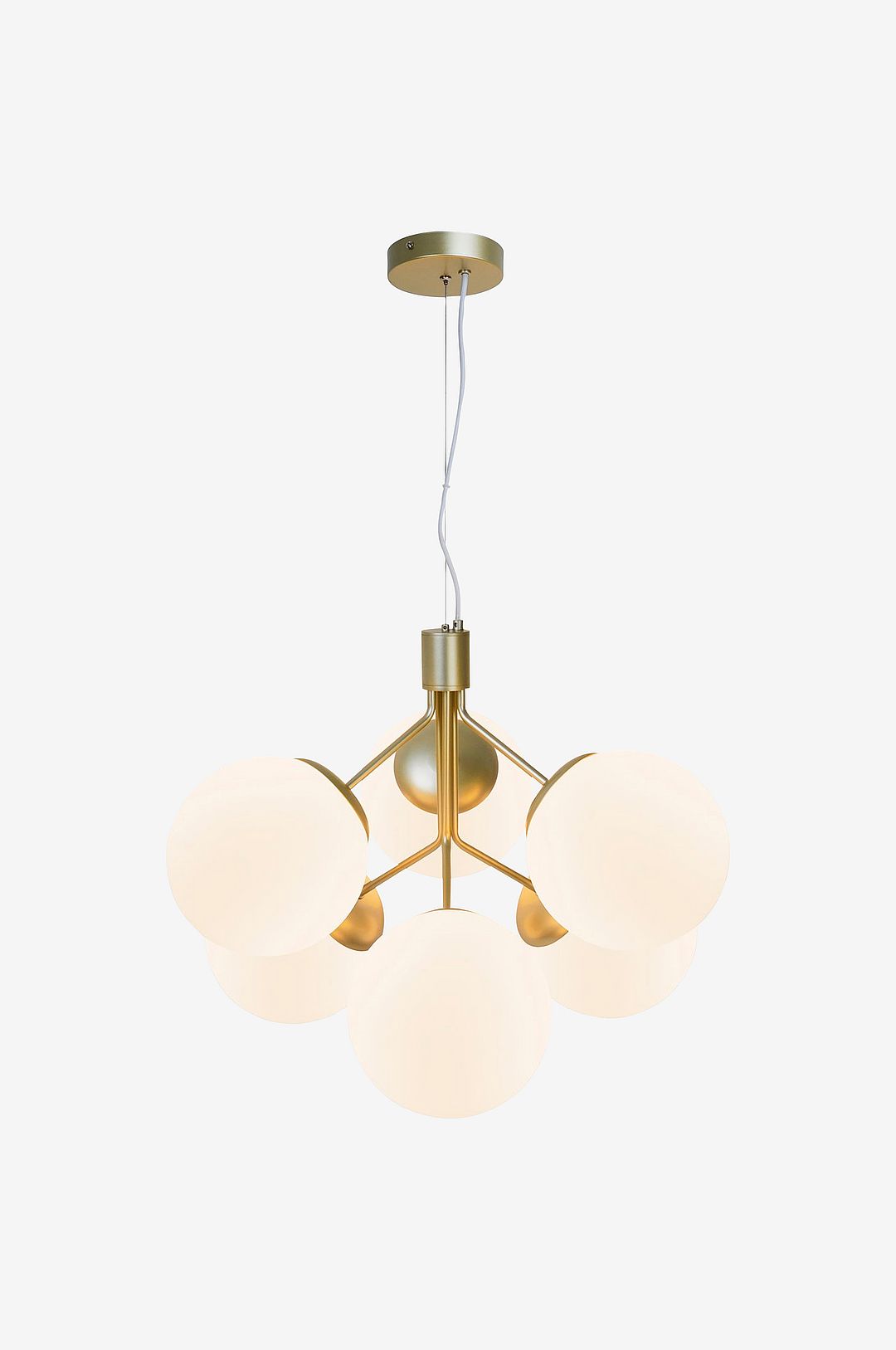 Ivona är en omtolkning av den klassiska ljuskronan – den utmanar den traditionella uppfattningen med ett mer organiskt och aktuellt utseende. Ivona avger ett vackert ljus från flera vackra glaskulor för en modern och extravagant stil. kombinationen av mässing och opalglas skapar ett glamoröst och elegant designuttryck. glaset i den här lampan är munblåst och har tillverkats individuellt för hand. På grund av denna unika process kan luftbubblor uppstå i glaset och dessutom kan glasets tjocklek variera. Detta ger glaset dess karaktär och levande utseende.