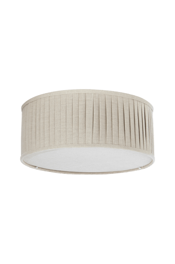 Fin och stilren plafond i ett härligt linnetyg. Taklampan kräver 3 stycken glödlampor med en E27 sockel, max 60 W. Höjd 18 cm, Ø 45 cm.Takkontakt ingår ej på grund av nytt EU direktiv. De finns att beställa separat.