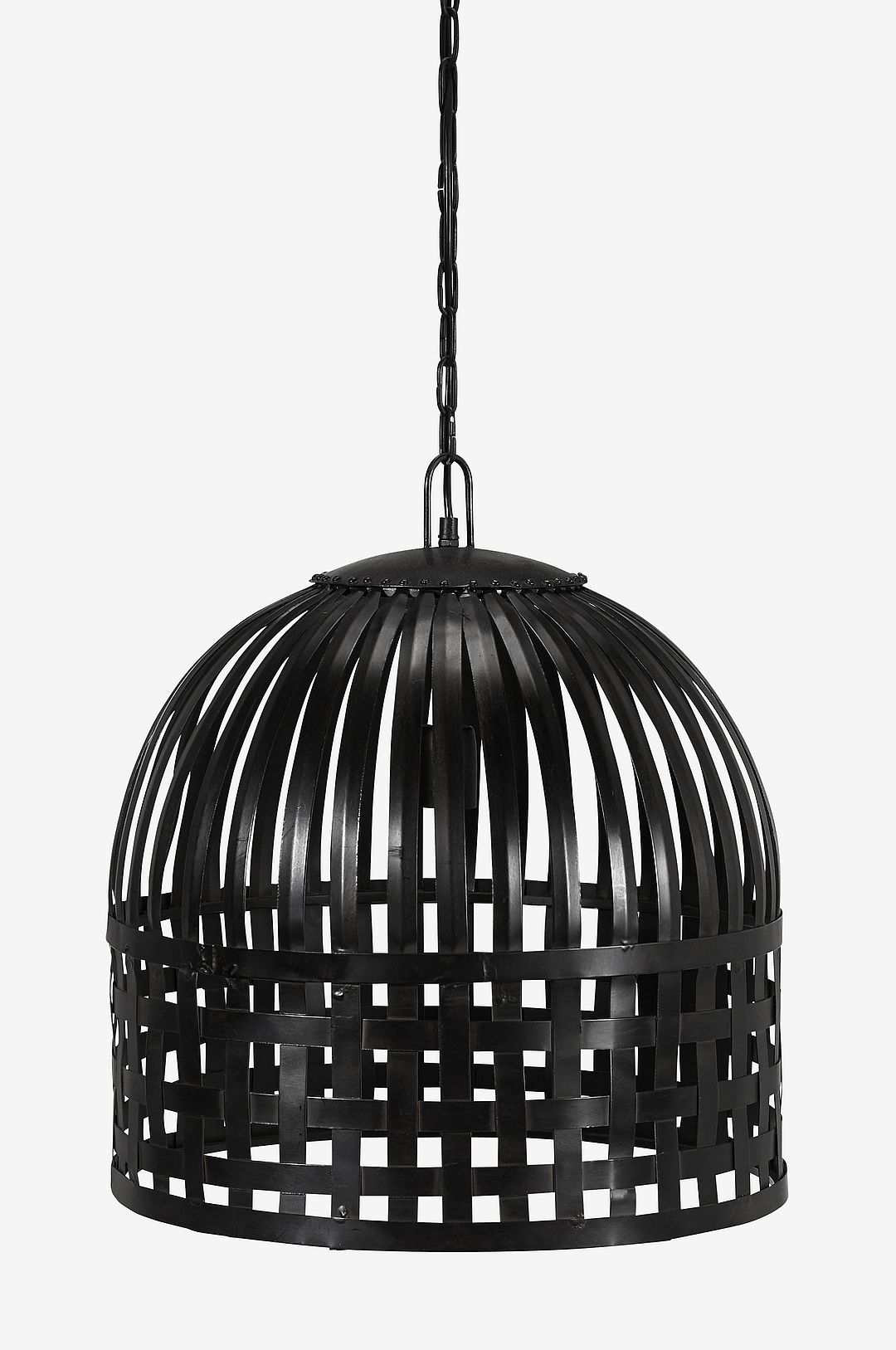 En imponerande lampa med flätade metallremsor som silar ljuset vackert. I metall. Höjd 46 cm och diameter 46 cm. Kedjelängd 100 cm och sladdlängd 100 cm. Ej dimbar. Ljuskälla ingår ej.