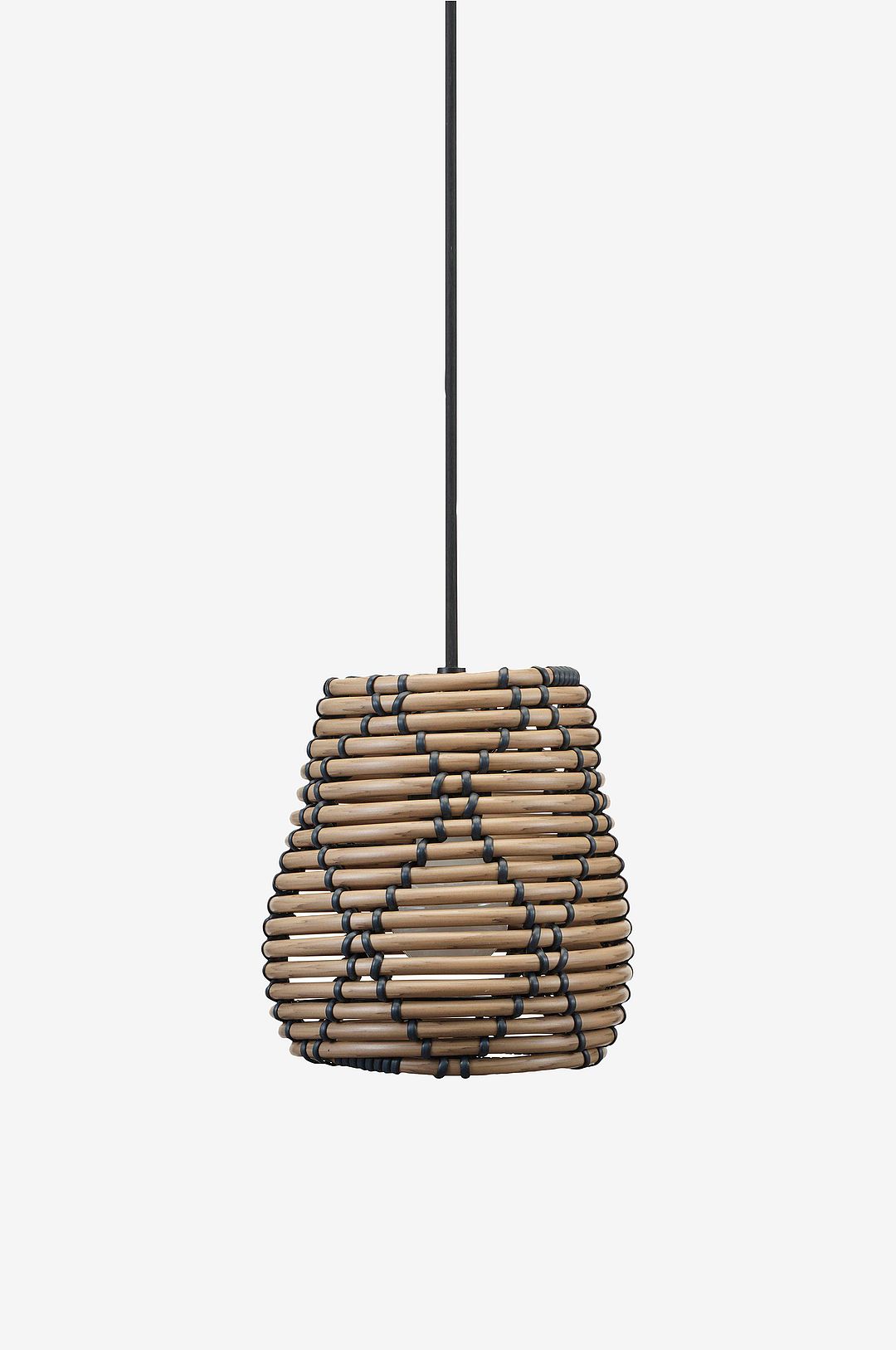 Lollo, en liten utomhusskärm i kraftigare konstrotting flätad med ett mönster. Konstrotting är ett tåligt material som klarar väder och vind. Den flätade strukturen skapar ett vackert ljusspel. Kombineras med flex out takupphänge för utomhusbruk.