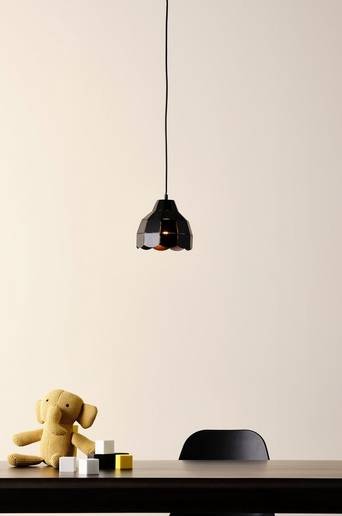 Taklampa av färgat järn med laserskurna detaljer. En tuff lampa som blir en snygg detalj i barnrummet. Svart sladd, sladdlängd 1 meter. Takplugg ingår ej p.g.a. nya EU-regler. Den finns att köpa separat och heter THE ROOF takplugg. Material: Järn. Storlek: Höjd 18 cm, ø 19 cm. Sockel/lampa: E27, max 40 w glödlampa. Ljuskälla medföljer ej. Tips/råd: En mysig lampa som sprider mysigt ljus. Fin att ha tänd om barnet tycker natten blir för mörk.