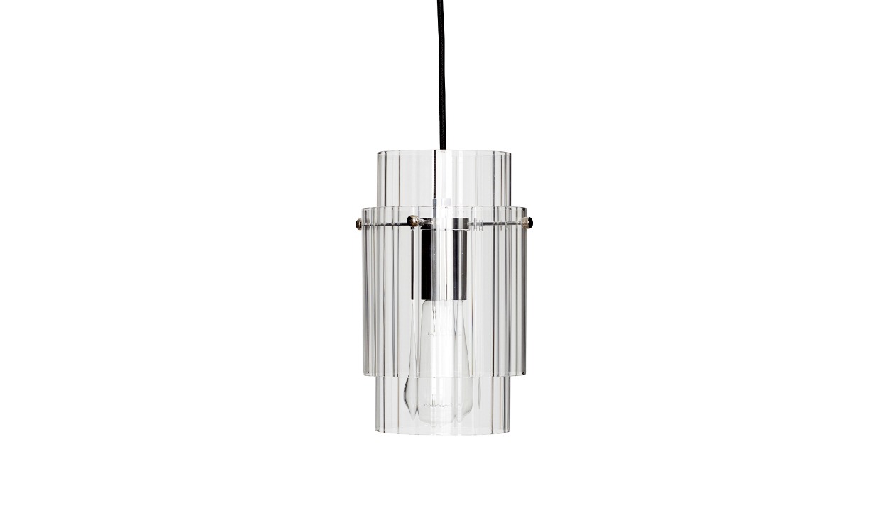 Denna eleganta taklampa gör sig fint ovanför matbordet, vid soffgruppen eller fönstret. Taklampan är tillverkad i glas som har ett underbart ribbat mönster samt en stomme i metall.Design & egenskaperElegant taklampa med ribbat mönster.Tillverkad i metall och glas.Plastsladd i svart.Lamppropp med sladd ingår ej.E27. Ljuskälla ingår ej.