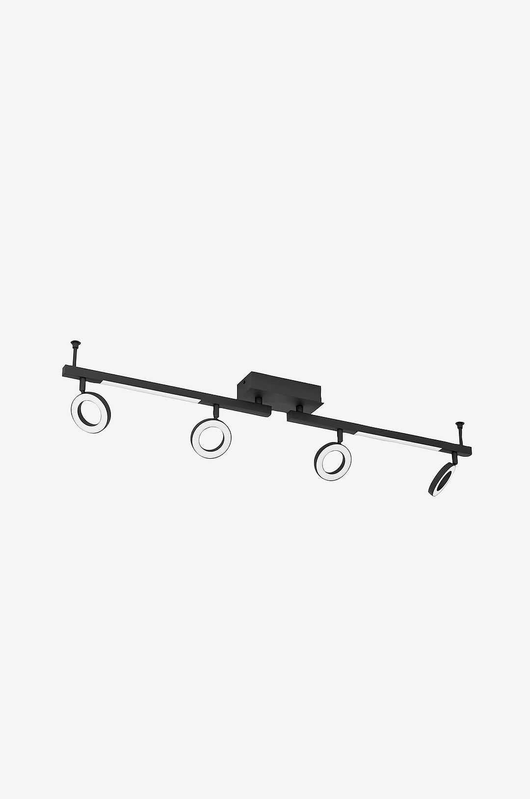 cardillio 2 led taklampa har ett takfäste i svart metall with fyra ringformade spotlights och rektangulära ljuspaneler däremellan. De integrerade lysdioderna under diffusorerna i satinplast ger ett varmvitt ljus. Taklampan smälter sömlöst in i with moderna stilar, och de svängbara huvudena gör att du kan justera ljuset för att accentuera enskilda delar av rummet, oavsett om det är i köket, vardagsrummet, sovrummet eller hallen.
