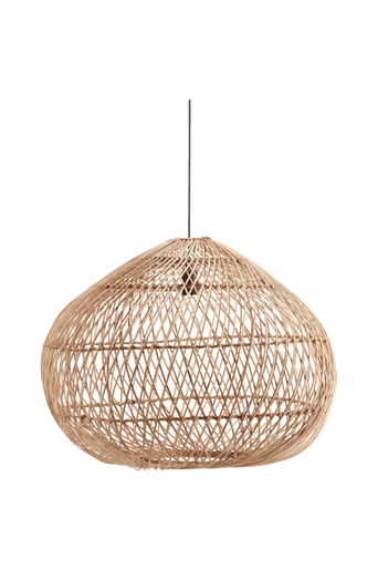 Flätad takskärm i rotting. Höjd 42,5 cm och diameter 51 cm. Levereras med svart E27 sladdställ i plast, 1,2 meter med takkopp. Takkontakt och ljuskälla köpes separat. Rotting är ett naturmaterial vilket gör att de kan skifta i sin nyans. Ojordad.