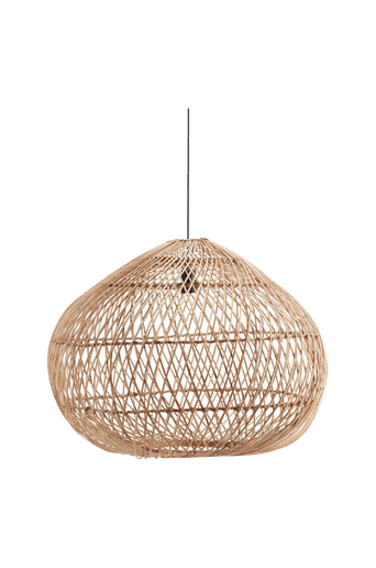 Taklampa Karen i flätad rotting. Naturmaterialet kan skifta i färg och utseendet kan påverkas av väder och vind. Varje skärm är handgjord och det kan förekomma mindre storleksavvikelser. Levereras med svart E27 Flex Out Takupphänge för utomhusbruk, 2,5 meter med väggkontakt. Höjd 53 cm, bredd 70 cm och djup 70 cm. Skärmen är anpassad för ljuskälla med max 40W. Takkontakt köpes separat.