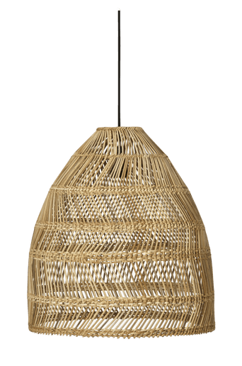Maja takskärm i en vacker tvinnad naturfärgad rotting. Passar lika bra utomhus, i växthus och uterum som inomhus. Svart lamphållare och takkopp samt plastsladd på 1,2 m ingår, men om du ska hänga den utomhus behöver du köpa till takupphänge och sladd för utomhusbruk. Tänk också på att den får en patina av vädret om den hängs ute. E27 Ring. Höjd 59,5 cm, bredd 53 cm och djup 53 cm. Takkontakt ingår ej på grund av nytt EU direktiv. De finns att beställa separat. Svart plastsladd 1,2 meter.