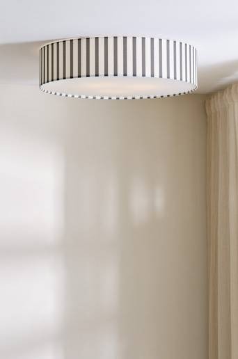 TOLLO plafond, en taklampa med en fräsch look, har en randig tygskärm som ger ett varmt och inbjudande sken. Akrylbotten ger en jämn ljusfördelning. Perfekt för en modern inredningsdesign. Lampan är jordad, klass 1. På grund av EU-regler behövs en separat takkontakt i vissa länder. Takkontakten ska vara jordad (klass 1) och köps separat. Material: Polyester. Undersida: Akryl. Lampskärm: ø 60 cm, höjd 14 cm. Antal ljuskällor: 3 . Monteras med skruvar i taket. Effekt max: 25 w. Ljuskälla ingår ej.