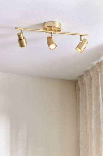 Taklampa i metall eller mässing med tre spotlights som sprider ett härligt sken i ditt hem. Med sin avskalade och samtidigt utstickande design blir TONY taklampa snabbt rummets mittpunkt. Takplugg ingår ej p.g.a. EU-regler. Den finns att köpa separat och heter ROOF EARTH takplugg. Material: Metall, mässing. Storlek: Höjd 17,5 cm, bredd 60 cm, djup 12 cm. Sockel/lampa: 3 st GU10, max 35 w glödlampa. Ljuskälla medföljer ej.