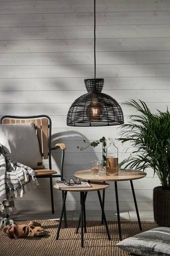 Lampskärm i konstrotting för utomhusbruk. Bredd 37 cm och höjd 29,5 cm. Mixa och matcha med utomhusupphäng och ljuskällor, ingår ej. Passar lämpligast till E27 sockel.