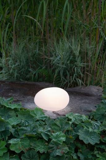 Solcellsdekoration i form av en vit sten. Lyser upp i mörkret med varmvitt sken. Höjd 18 cm, bredd 32 cm och djup 26 cm. Ledljuskälla ingår samt batteri ingår till ljusrelät. Medellivslängd ca 10000 timmar. Total effekt 0,13W. Volt 2,4V DC.