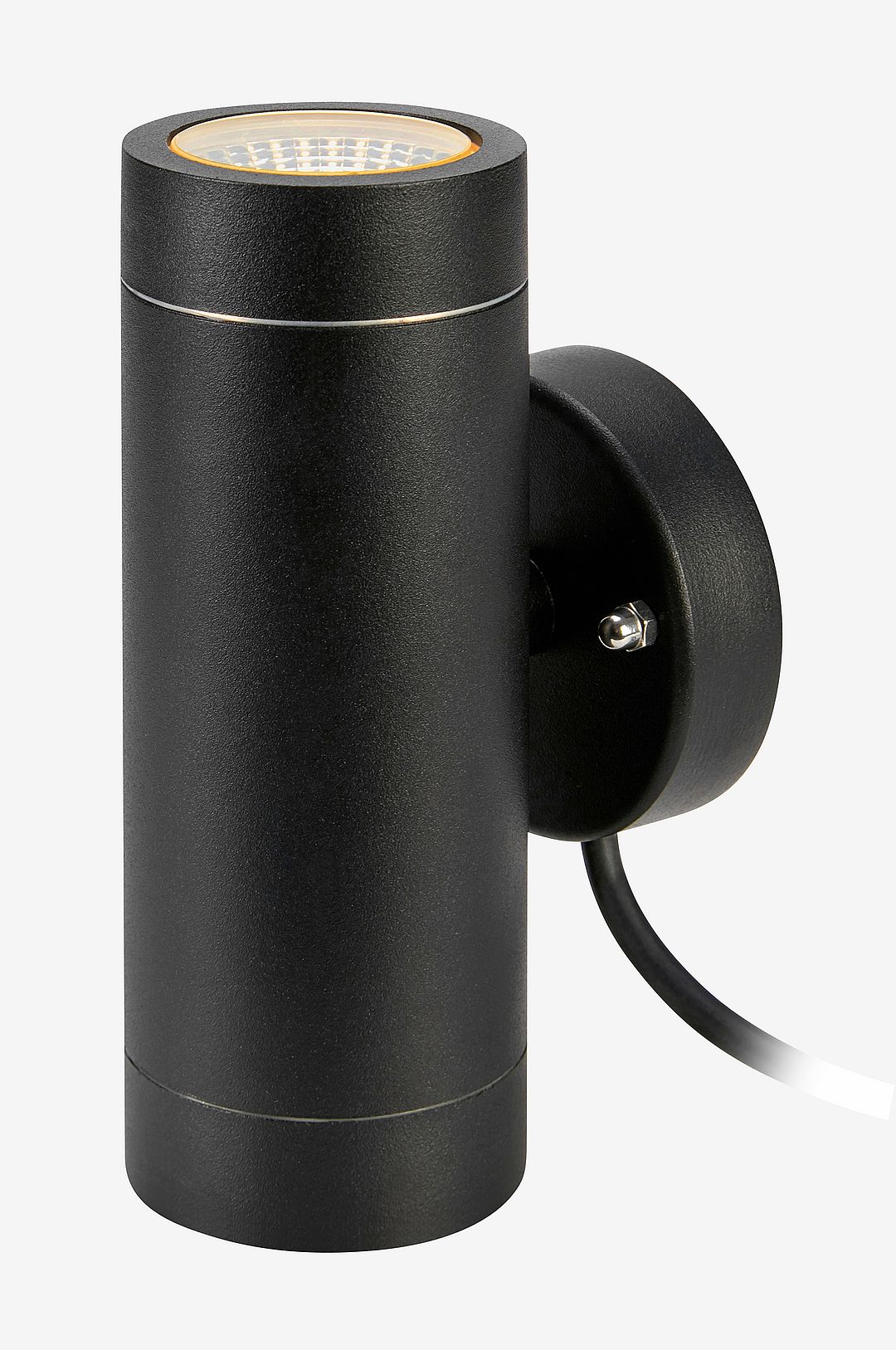 Vägglampa för utomhusbruk som ger dig ett härligt varmt sken riktat både nedåt och uppåt. Denna lampa har fast LED 2 x 3W. 3000K varmvitt ljus, 300lm. Lampan är för utomhusbruk och har IP-klass 44, och är dimbar. 2 meter kabel för inkommande ström. Transformator behövs till denna produkt, ingår ej.