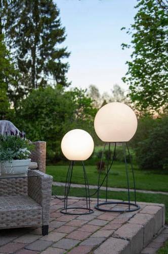 Golvlampa för utomhusbruk på svart stativ med vit skärm. Lampan går lika bra att använda utan stativ. Svart anslutningskabel, sladdlängd 3 m. Storlek: Höjd 70 cm, ø 29 cm. Sockel/lampa: 1 st E27, max 40 watt glödlampa. Ljuskälla medföljer ej.