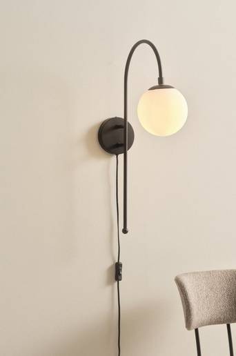 Vägglampan BLANCHE ger ett nätt och piggt intryck med sin vita kupa av opalglas på ett smäckert, snyggt format väggfäste. Svart sladd med strömbrytare på sladden. Material: Opalglas, metall. Storlek: Total höjd 60,5 cm, djup 40 cm, kupa ø 15 cm. Sockel/lampa: 1 st E27, LED max 5 w. Ljuskälla medföljer ej. Tips/råd: Kombinera med ljuskällan Filament dekorationslampa LED dimbar E27 4W ø 60 mm, artikelnummer 1622947-01-0 / 1622947-02-0.