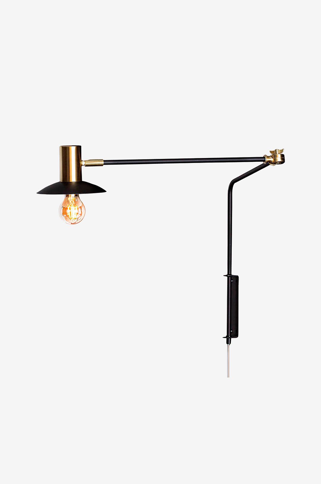 Quinn vägglampa passar i de flesta rum, särskilt om du har en inredning som grundar sig i den grafiska stilen. Quinn vägglampa kommer i två olika modeller där den större varianten har en höjd på 60 cm och bredd på 92 cm. Den är roterbar vid väggfästet, har en roterbar led på armen samt att huvudet också är roterbart, allt för att skapa ett större användningsområde. Ljuskälla ingår ej.