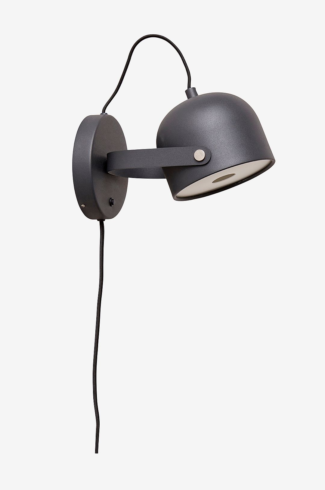 Svejk i matt metall med nickel- eller mässingsdetaljer ger en sober skandinavisk känsla och skapar både ljus och karaktär. Lampan är vridbar och fungerar därför bra som läslampa. Diameter 13 cm, höjd 13 cm, bredd 23 cm. Textilsladd, 1,5 meter. Strömbrytare på väggfästet. Ljuskälla ingår ej.