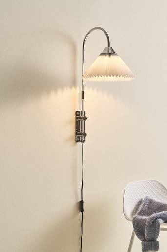Vägglampan FLORENCE har kromat, stilrent fäste och arm som matchas fint av en veckad textilskärm. Böjningen upptill på armen ger lampan en mjukare känsla som står i snygg kontrast till kromfärgen. Skärmen har diskret metallstomme och kromad topp. Svart sladd med strömbrytare på sladden. Material: Metall, skärm av 65% polyester och 35% bomull. Storlek: Total höjd 55 cm, djup 30 cm. Skärm: ø 25 cm, höjd 13 cm. Sockel/lampa: 1 st E27, LED max 5 w. Ljuskälla medföljer ej. Tips/råd: Kombinera med LED dimbar E27 4 w, ø 60 mm, 1622947-01.