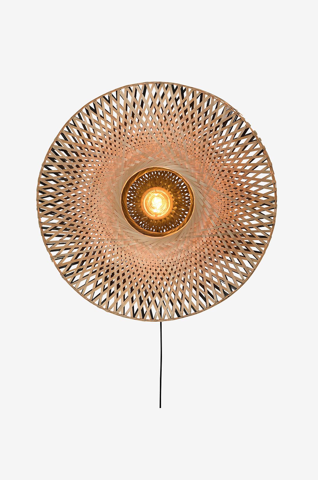 Vägglampa Kalimantan bamboo flat L. Lamphållare utav järn och skärm handgjord i bambu. Diameter 87 cm. Max 60W och med E27 sockel. Ljuskälla ingår ej. Sladdlängd 2,5 meter. För varje lampa som säljs donerar Good&Mojo till WakaWaka Foundation. WakaWaka Foundation är en oberoende stiftelse som bekämpar energifattigdom och tillhandahåller solceller till människor i humanitära hjälpsituationer i områden över hela världen. Good&Mojo är också partner i skogsplanteringsprojektet Eden vilket innebär att för varje lampa som säljs av Good&Mojo planteras ett träd. Detta projekt syftar till att återplantera skog runtom i världen och samtidigt minska extrem fattigdom genom anställning av lokala bybor där träden planteras.