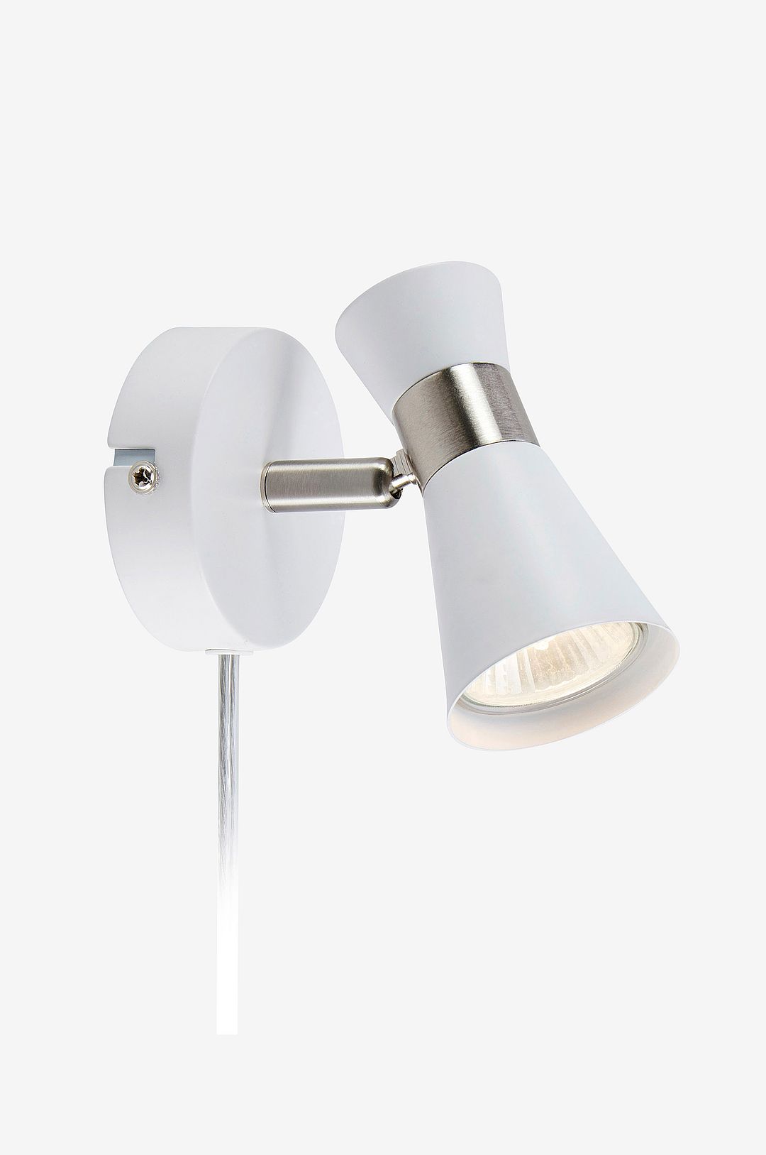 Folie vägglampa från markslöjd. Liten och nätt vägglampa i metall. 2m transparent pvc kabel med brytare på sladden och väggkontakt. Kopplingsbox i plattan för att enkelt kunna montera på direkt kommande el. Monteras med bygel. 1xgu10, max 7w. Ljuskälla ingår ej.