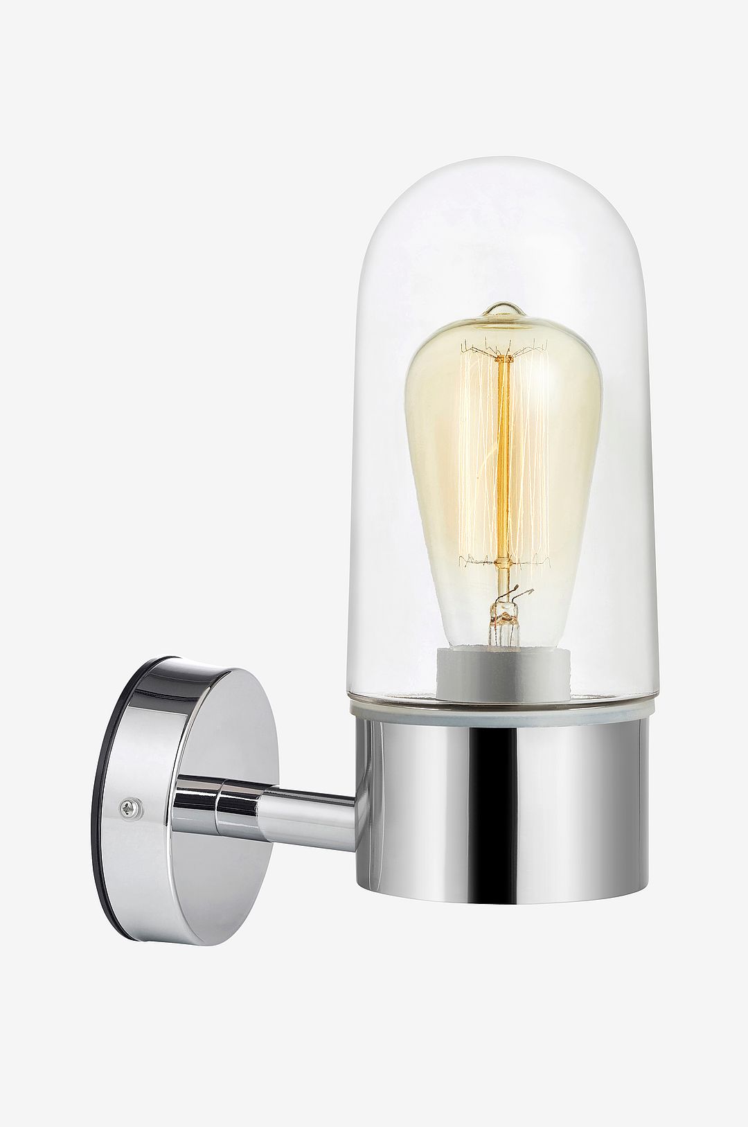 Zen vägglampa från Markslöjd. Vägglampa med bas i krom och glas. IP44. Godkänd för badrum. Monteras med bygel. Mått: Bredd 10 cm, djup 17,5 cm och höjd 26 cm. Max 1x15W. E27-sockel. Ljuskälla ingår ej. Dimbar.