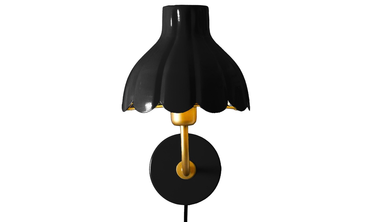 Wells är en charmig och handgjord vägglampa med inspiration hämtad från blommans mjuka former. Lampan har en elegant guldfärgad insida som sprider ett varmt, behagligt sken och skapar en inbjudande atmosfär i rummet. Perfekt som stämningsfull belysning i sovrum, hall eller vardagsrum.Design & egenskaperHandgjord vägglampa med blomlik form.Tillverkad av metall.1,6 m svart kabel med strömbrytare.E27 sockel, max 25W.Mått: höjd 35 cm, bredd 21 cm, djup 31 cm.
