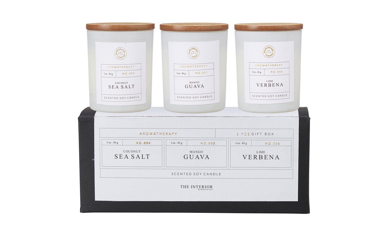 YASU DoftLjus 20h Aroma Therapy från Wikholm Form kommer i en fin presentask, där det ingår tre doftljus Coconut sea salt, Mango guava och Lime verbena. Låt ditt hem fyllas med rofyllda dofter eller ge bort YASU DoftLjus i present till någon du tycker om.Design & egenskaperLjuvliga dofter från Wikholm Form, där doftljusen är tillverkade av soya och vax.Tillverkad i papper.Brinntid 20 timmar.