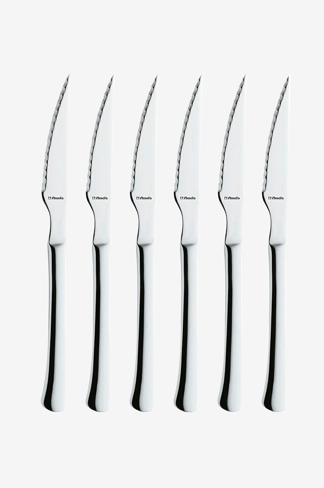 Grillknivar i elegant och nätt design. Tillverkas av 18/10 stål och är godkänd för diskmaskin. Levereras i 6-p. Finns även gafflar i samma serie.