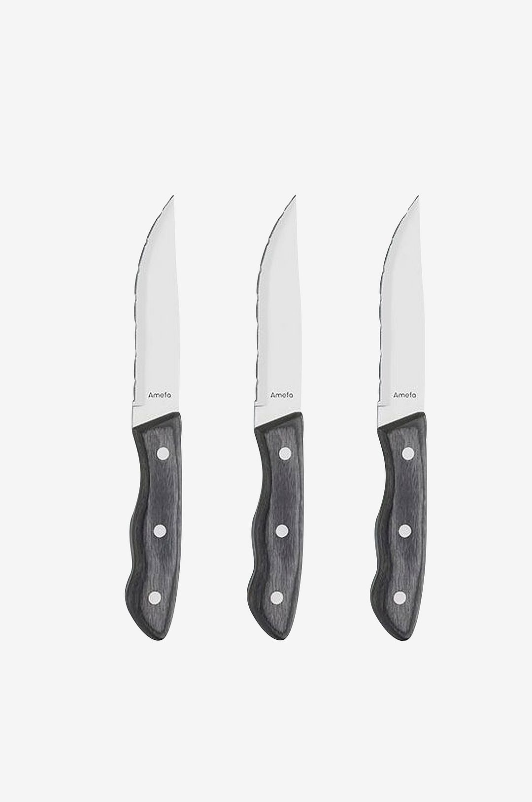 Set om 3 robusta grillknivar. Extra brett blad och extra långt handtag i trä gör att kniven ligger riktigt gott i handen och är perfekt för köttbiten. Den flintande kanten garanterar en enkel och smidig skärupplevelse, perfekt för sommarens grillfester. Dessa skarpa knivar är tillverkade i rostfritt 13/0 stål och handtag i trä. Diskmaskinssäker mått: 24,5cm