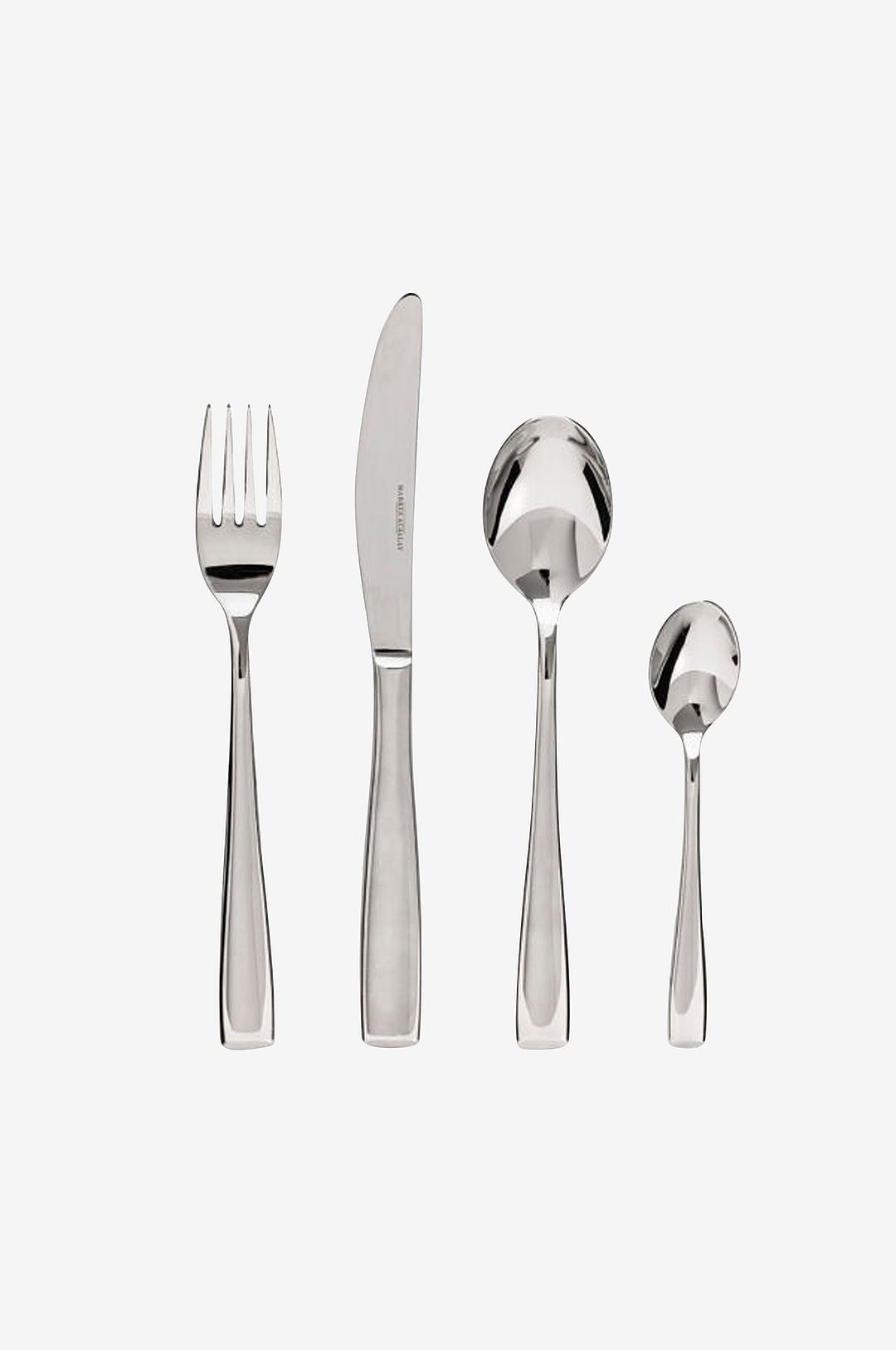 Ett vackert besticksetet noga utvalt av Markus Aujalay som ger dukningen balans och harmoni. Besticken är gedigna, men ändå mjuka i formen och sköna att hålla i. Tillverkade av högsta kvalitet i 18/10 stål med spegelpolish. · Tjocklek gaffel, kniv och sked 6 mm · Tjocklek tesked 5 mm · Markus Aujalays logo på alla bestick · Levereras i presentförpackning