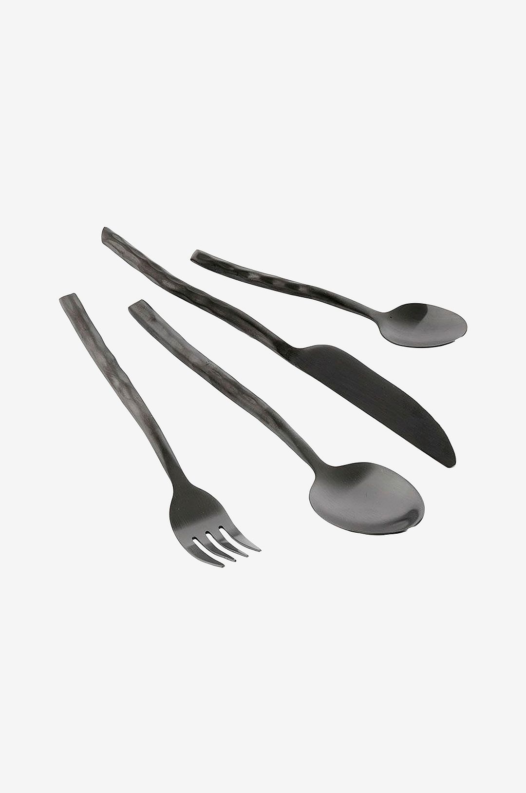 Uta-besticken har fått sitt namn från japanska Utareta, som betyder hamrad eller slagen. De karakteristiska hammarmärkena på besticken i vattensvart finish tillsammans med den kalla stålkänslan ger en taktil yta som håller dig nere på jorden. Vi rekommenderar handdisk för att behålla den vackra ytan. Besticken kan behandlas med matolja vid behov. Varje bestickset består av 16 delar som innehåller 4 gafflar, 4 knivar, 4 teskedar och 4 matskedar.