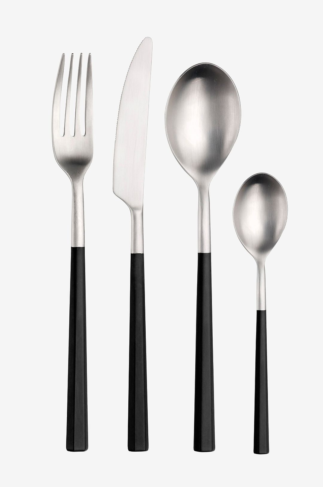 En elegant sked i matt rostfritt stål med ett svart sexkantigt handtag i sps. Mycket lätt och ligger skönt i handen. Passar till både klassiska och moderna dukningar.