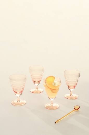 4-pack vinglas på fot. JOVI är bubbligt i formen med randig struktur och glaset är tonat i färgen från aprikosfärgad fot till klarglas upptill. Vinglaset JOVI passar fint till både vitt, rött, bubbel och rosé. Glaset är både festligt och avslappnat och till sommarens party är det en fullträff. Material: Glas. Storlek: Höjd 13,5 cm, topp ø 8,5 cm, fot ø 7,5 cm. Vikt 140 g. Rymmer 25 cl/glas. Skötselråd: Handdisk. Tips/råd: Linne i härliga nyanser kommer att ge dig en fantastisk dukning. Linnedukar i lager och linneservetter är en magisk kombination till det fina glaset JOVI.