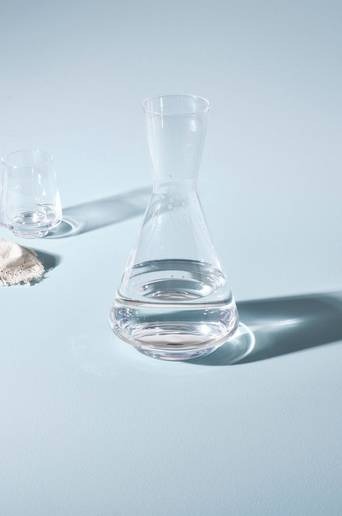 Stilren karaff i avskalad design. KAI passar perfekt att duka fram när gästerna kommer över på middag. Rymmer upp till 1,2 liter. Material: Glas. Storlek: Höjd 27 cm, ø 13,5 cm. Skötselråd: Handdisk.