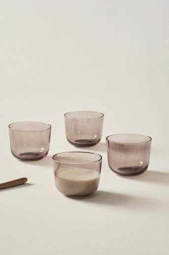 4-pack glas av rökfärgat glas som ger drycken en aptitlig inramning. De smäckra glasen har mjuka linjer. I serien VANNA finns glas som matchar fint när du dukar middagsbordet för dina gäster. Material: Glas. Storlek: Höjd 6 cm, topp ø 8,4 cm, botten ø 4,5 cm, rymmer 22 cl/glas. Vikt: 133 g/glas. Skötselråd: Handdisk. Tips/råd: Skapa en vacker dukning med tygservetter till de fina glasen. Välj servetter som passar ditt tema på dukningen.