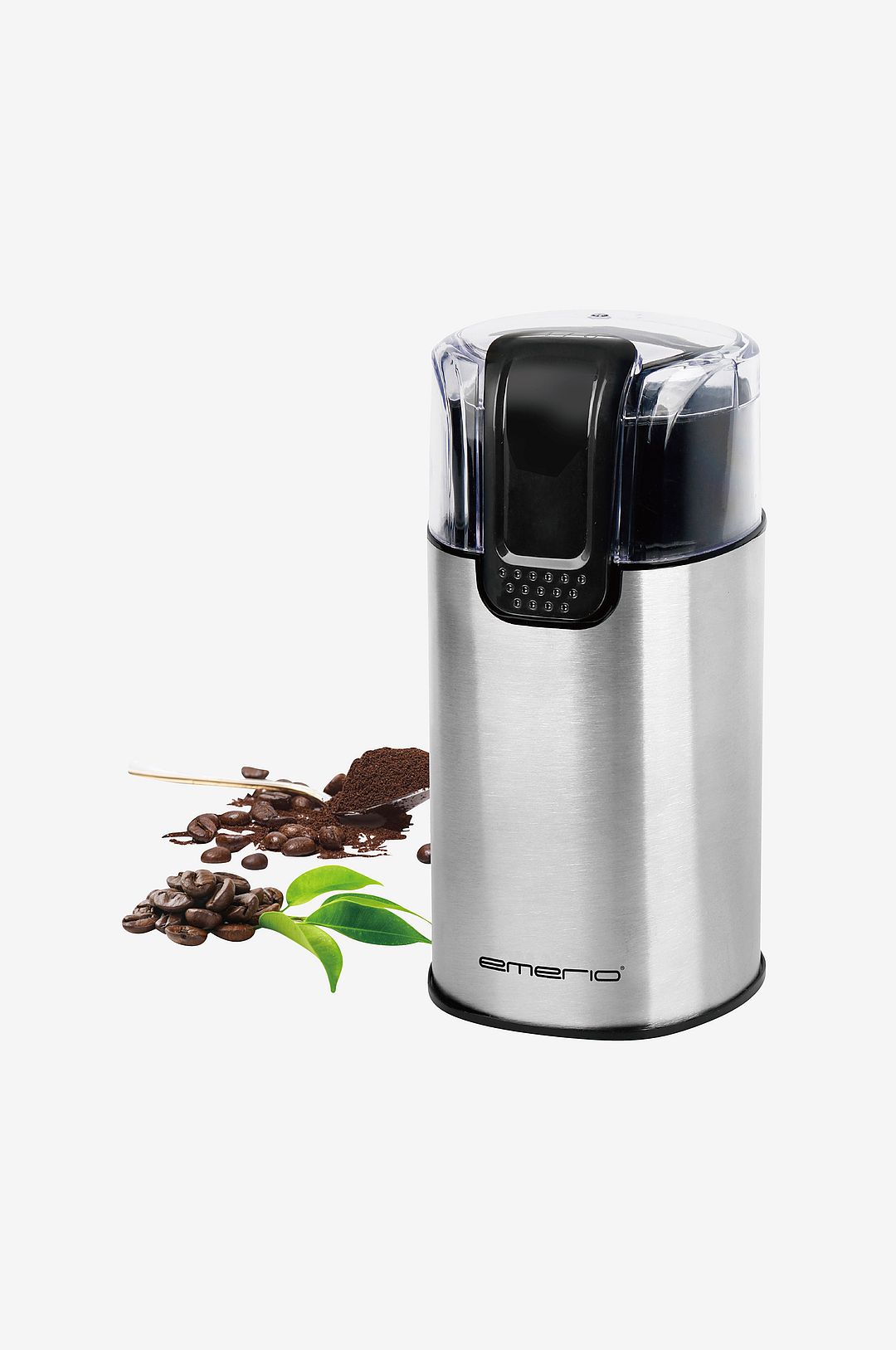Mala ditt eget kaffe med denna snygga och snabba kaffekvarn med denna effektiva och behändiga lilla kaffekvarn i stilren design från emerio kan du enkelt mala ditt eget kaffe och dina egna kryddor. Fyll på med kaffebönor och använd den flexibla pulsfunktionen för att enkelt få härligt doftande och nymalet kaffe till kaffestunden. kaffekvarnens design är praktisk och elegant sober i polerad metall och ett transparent lock. De rostfria stålknivarna maler enkelt kaffebönor eller kryddor och längden och effekten på malningen styrs med den enkla pulsfunktionen. kapaciteten är 60 gram. en praktisk, enkel och snygg kaffekvarn som snabbt förvandlar kaffebönor till doftande nymalet kaffe. kapacitet 60g 2 knivar i rostfritt stål Säkerhetslock på/av-knapp halkskyddade fötter bpa-fritt material i kontakt med livsmedel