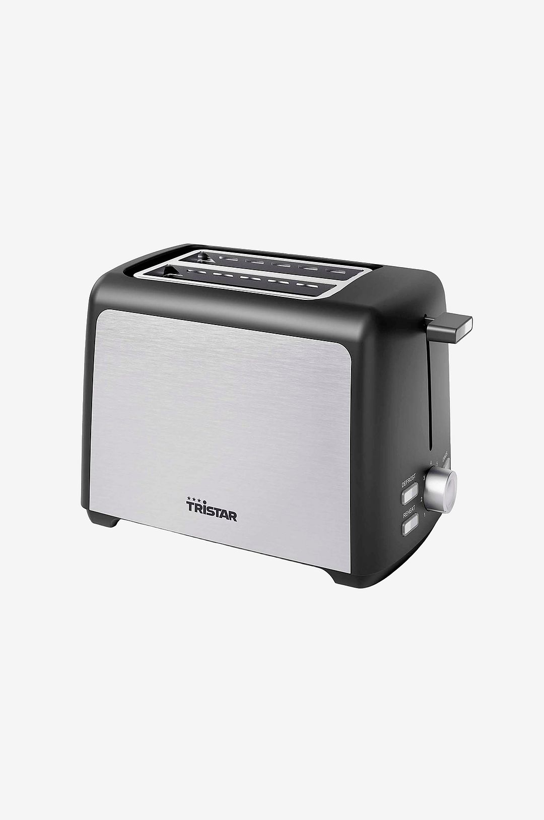 · Kompakt svart brödrost med finish i rostfritt stål · Praktisk brödvärmare och löstagbar smulbricka ingår · Funktioner för upptining, återuppvärmning och avbrytning · Effekt på 800 watt · Konstruktion i rostfritt stål · Rymmer 2 skivor · 7 justerbara inställningar