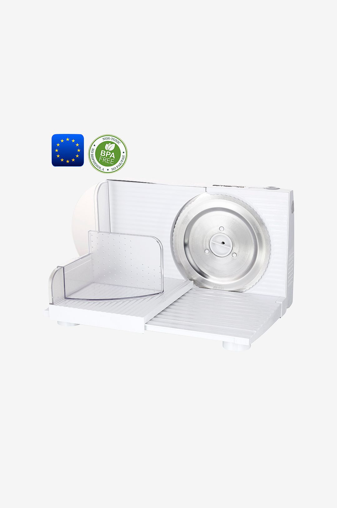 En mycket praktisk och användbar matskivare Ställbar mellan 0- 17mm vilket täcker de flesta behoven. Utrustad med säkerhetsfunktioner för att undvika skador samt hopvikbar för smidig förvaring. – Knivblad I rostfritt stål – Avtagbar knivklinga – Justerbar skivbredd 0 – 17mm – Säkerhets på/av-knapp – Matningsenhet med tumskydd – Anti-glidfötter – Vikbar – BPA-fritt material – Kabellängd 1m – Diameter 165mm – 100 watt
