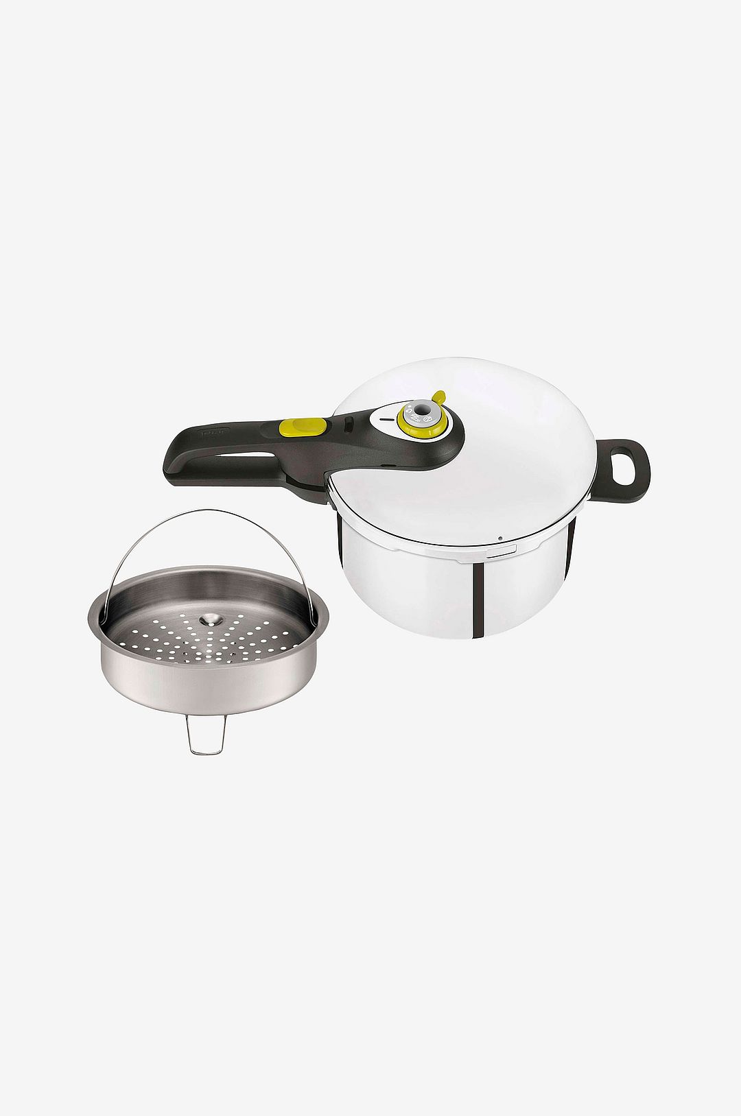 Tefal Secure 5 Neo – den prisvärda tryckkokaren med alla nödvändiga säkerhetssystem. Bakelithandtag med automatiskt lås. Passar alla hällar. Tål diskmaskin men handdisk förlänger hållbarheten. 2 olika kokprogram. Enkel och säker tryckkokare – 2 kokhastigheter – Tjock botten – Passar alla spisar inklusive induktion – Volym: 6 L – Material: Rostfritt stål – Material på handtag: Bakelit – Med ångkorg – 5 säkerhetssystem – Tål maskindisk, men handdisk förlänger produktens livslängd