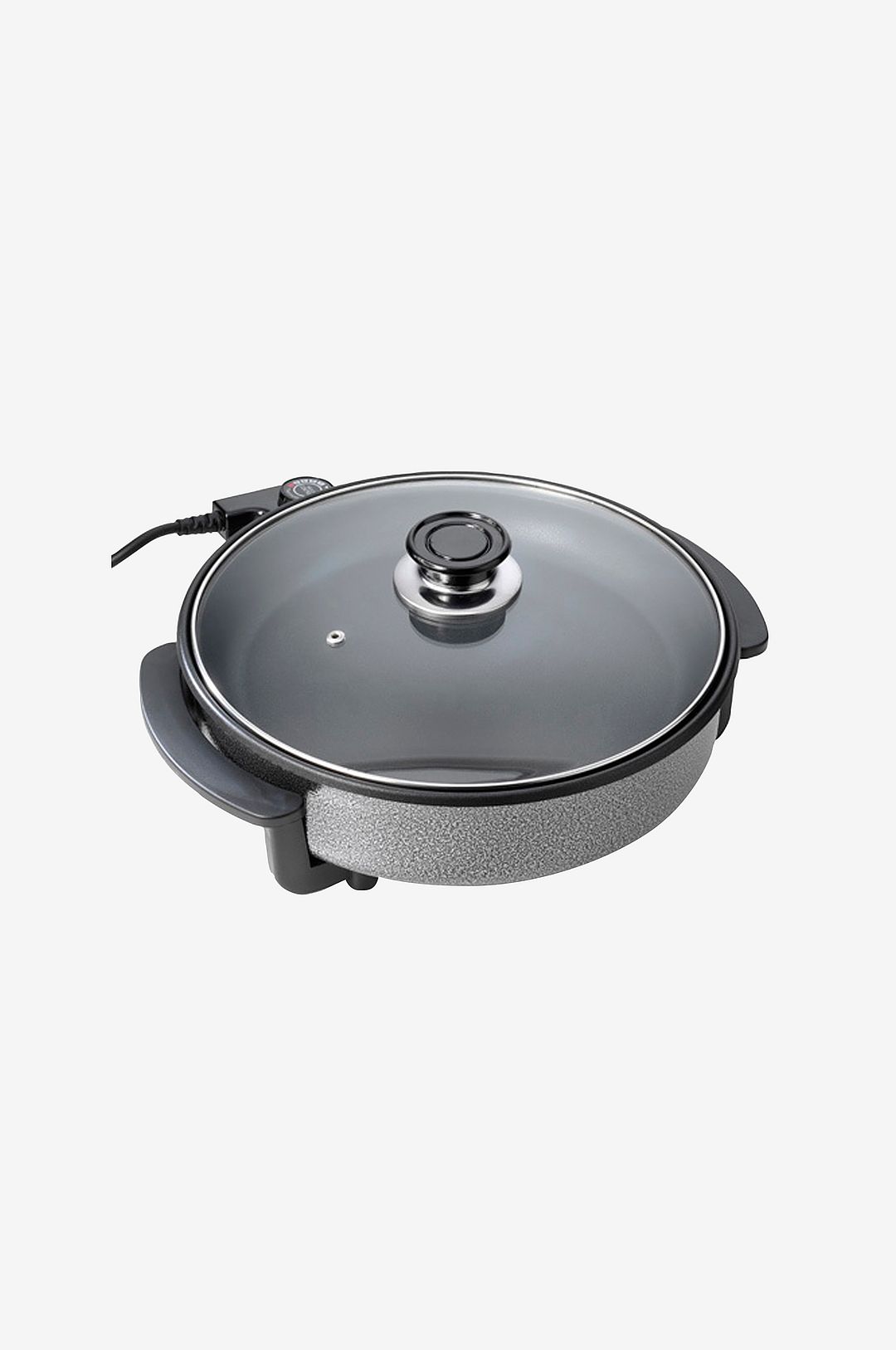 I denna pizzapanna kan du verkligen baka och steka allt från potatis till fisk! Du skapar din egen mat! Diametern på pannan är 30 cm – Diameter stekyta: 30 cm – Termostat på avtagbar nätsladd – Justerbar termostat – Non-stick beläggning – 5 Inställningar stycken – Integrerade handtag – Strömindikeringslampor – Löstagbart lock – Genomskinligt lock – Lock med ångutsläpp – Anti-glid fötter – Effekt: 1500 Watt
