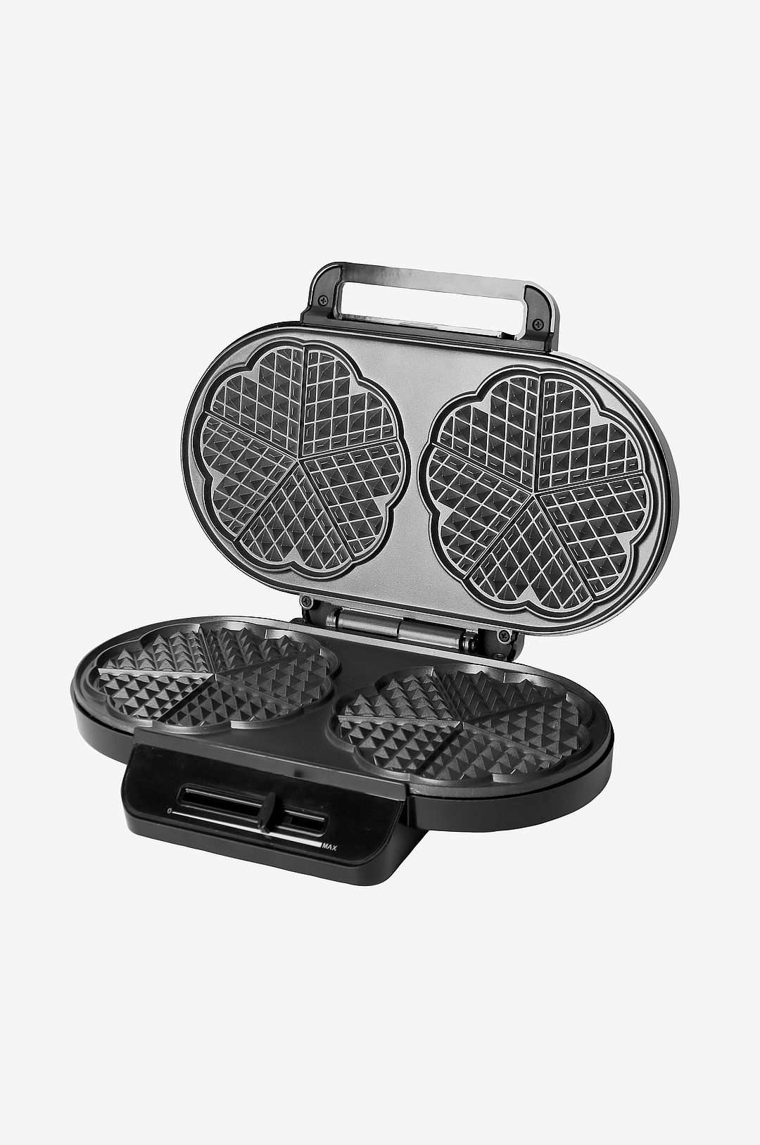 Grädda frasiga våfflor med det dubbla våffeljärnet från emerio Med det här dubbla våffeljärnet med en effekt på 1200w från emerio gräddas två krispiga och klassiska hjärtformade våfflor på samma gång. Fyll bara våffelsmeten i järnet och reglera värmen med temperaturkontrollen för önskad gräddningsnivå och snart har du två perfekta våfflor redo att ätas med sylt, grädde, glas eller andra tillbehör som du väljer. Det dubbla våffeljärnet är i svart och metall med en stilren design där bakytan består av en non-stick beläggning som gör det enkelt att rengöra efter användning. Våffeljärnet har även en justerbar temperaturkontroll för enkel justering av värmen samt ett värmeisolerat handtag. Med de halkskyddade fötterna står våffeljärnet stadigt under gräddningen. Dubbel våffelglädje för hela familjen! effekt: 1200w kapacitet: 2 hjärtformade våfflor indikatorlampa non-stick beläggning värmeisolerat handtag enkel rengöring halkskyddade fötter