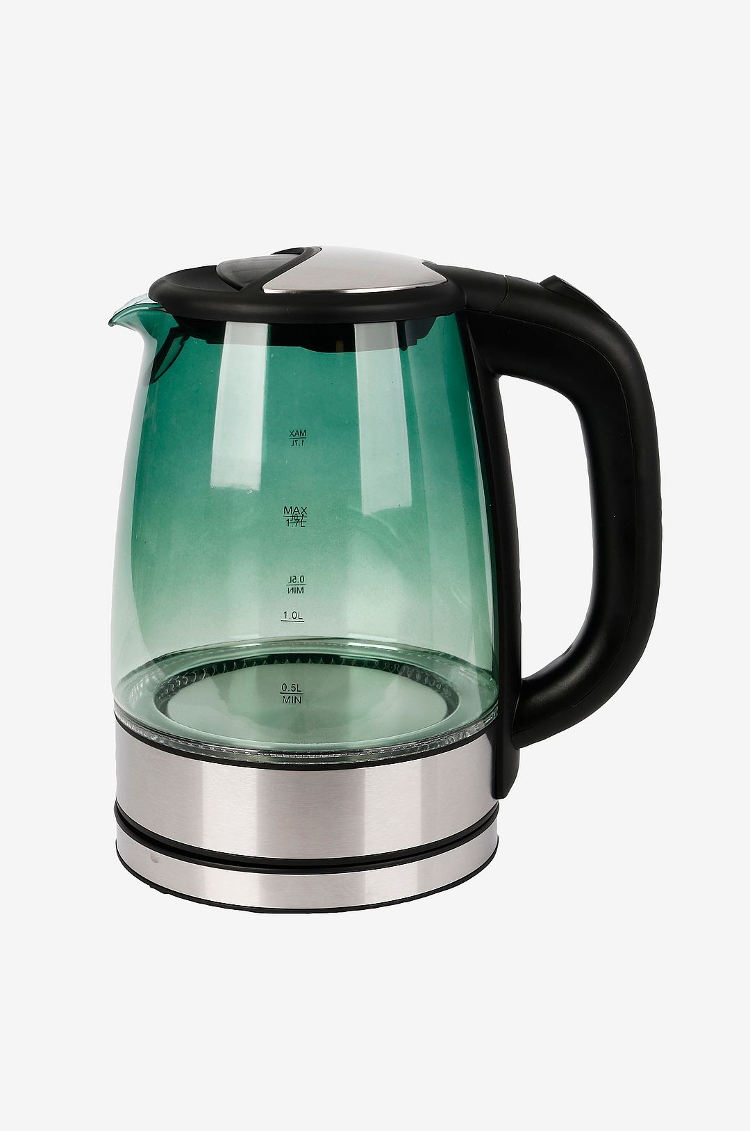 Stilren och effektiv vattenkokare med en läcker ledlampa i kannan. Denna eleganta och snabba vattenkokare i trendig design har en kapacitet på upp till 1,7 liter. Med en effekt på hela 2200 watt kokar den upp ditt vatten mycket snabbt, samtidigt som du har en läcker belysning i kannan. designen är trendig med en kanna i grönt glas och snygga detaljer. Vattenkokaren är praktiskt roterbar i 360 grader, har tydliga vattennivåindikeringar, en på- och avknapp med ljusfunktion och automatisk avstängning. Dessutom finns ett ledljus i kannan för en fin effekt. en mycket snabb vattenkokare med en attraktiv design som passar bra i alla kök. effekt 2200 w indikator för vattennivå LED-belysning i kannan 360 graders sladdlös kanna automatisk avstängning på/av-knapp dolt värmeelement strix®-kontroll Bpa-fri volym 1,7 liter