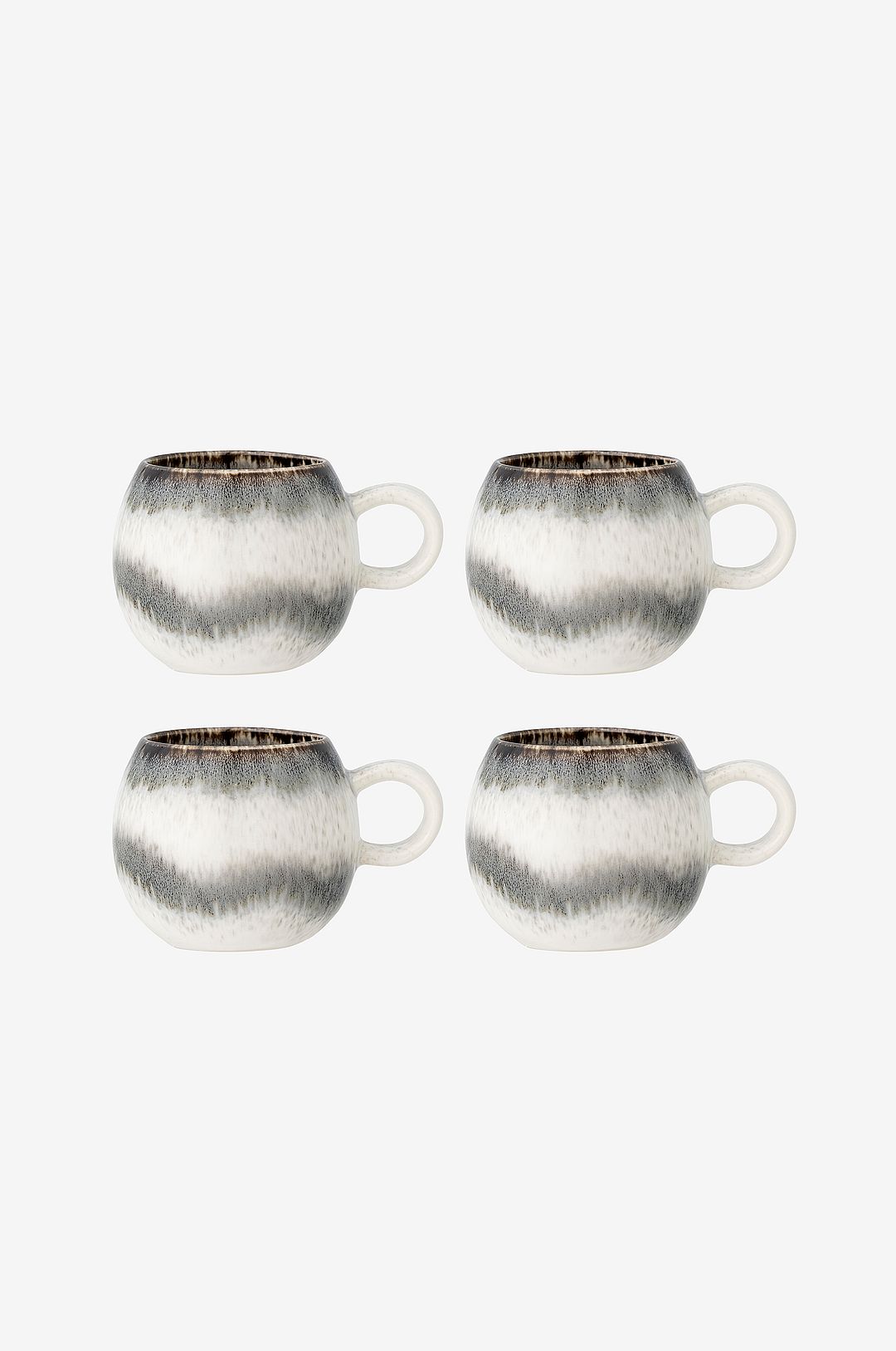 Förhöj din matupplevelse med bloomingvilles paula kopp, paket om 4. Varje kopp har en vågig rand av grå och vita nyanser som passar perfekt ihop. Individuellt handgjorda, förvänta dig härliga variationer. På grund av glasyrens natur kan färgvariationer förekomma. Koppens innehåll 250 ml. H: 11 cm