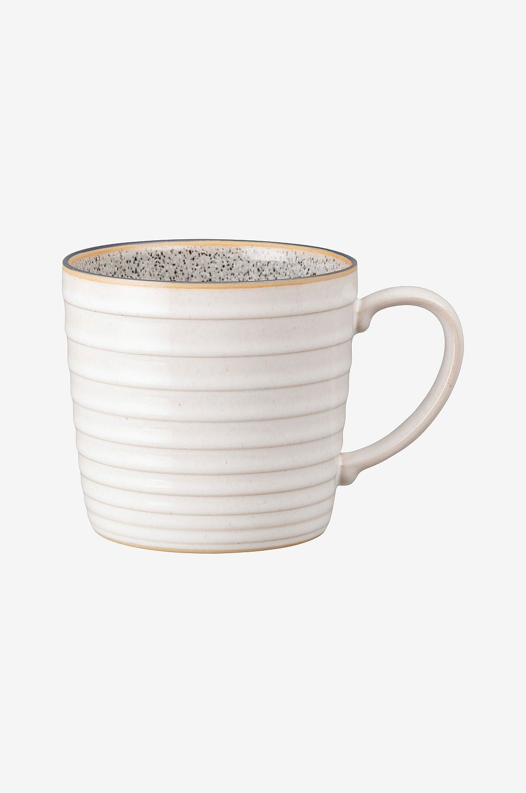 Handgjord, räfflad mugg i stengods.Sobra toner med en grå reaktiv glasyr, inramad av det djupa och rika kolbandet accentuerat med den mjuka dämpade gråvita gör att muggen kommer att förgylla fikastunden varje dag. Studio Grey är en handgjord stengodsserie med fängslande glasyr och skicklighet i keramik som förts vidare genom flera generationer. Leran till Studio Grey är tagen utanför Denbys 200 år gamla fabrik i Derbyshire. Alla delar i serien är ugn-, frys-, mikrovågsugn- och diskmaskinsäkra. Ingår i Denbys 10-års-garanti.