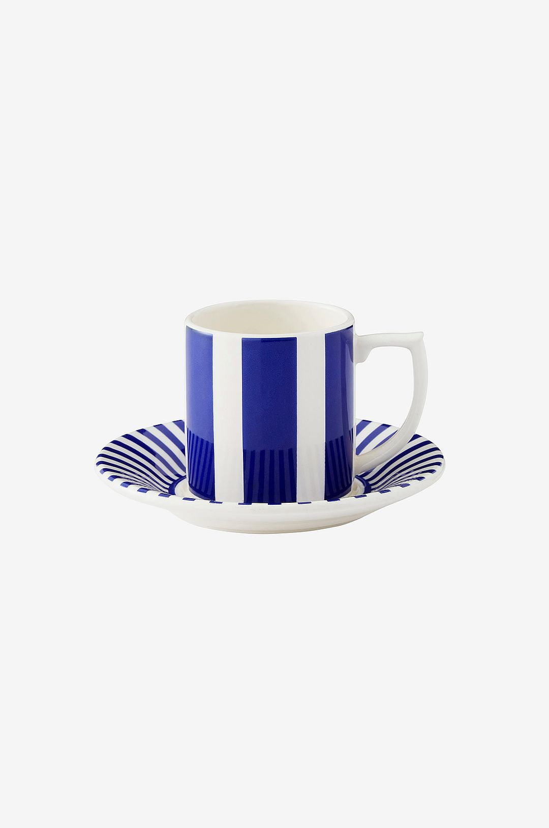 Denna espressokopp med fat från Steccato är en perfekt present till dem som gillar att göra ett statement, med mixade och matchade ränder för en fängslande uppsättning. Använd ensam eller tillsammans med den ikoniska blå italienska servisen för en unik dukning. Kan diskas i maskin