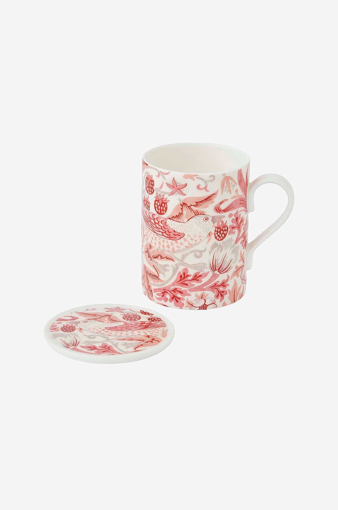 Spode – Mugg- och underläggsset Morris & Co Strawberry Thief Madder – Röd – Koppar & muggar – Från Homeroom