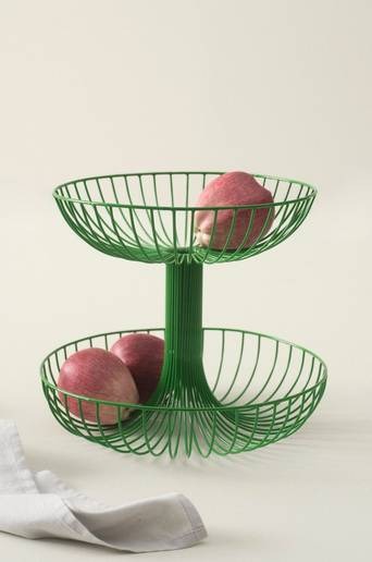 Skål av järntråd, målad i blank färg. Tvåvåningsmodell som exponerar frukt på ett härligt sätt. Att ha frukt framme gör det enkelt att vara nyttig och det är samtidigt en vacker och naturlig dekoration. Skålen är också fin på buffébordet eller middagsbordet med till exempel bröd. Material: Järn. Storlek: ø 35 cm, höjd 18 cm. Skötselråd: Handdisk. Tips/råd: MARIN är fin som fruktskål på bordet framför tv:n, frukt som kvällsfika är alltid ett bra val.