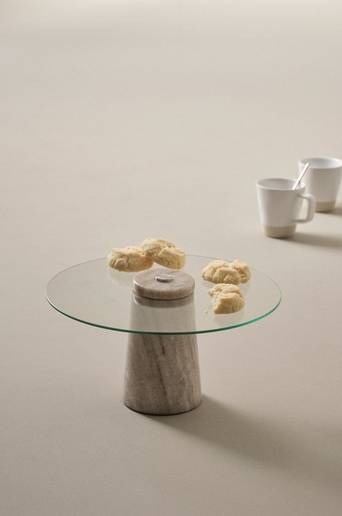 Runt serveringsfat av glas på fot av marmor. Uppläggningsfatet exponerar småkakor lika fint som aptitretare och tilltugg. Marmor är en natursten och mönstret varierar alltid lite beroende på bergartens sammansättning, vilket gör varje skärbräda unik. Material: Marmor och glas. Storlek: ø 30 cm, höjd 15 cm. Skötselråd: Handdisk. Torka torr med en diskhandduk. Torka omedelbart upp utspilld vätska på marmor. Undvik sura vätskor, såsom vin, citrus, vinäger etc. Skydda gärna skärbrädan med marmorolja emellanåt. Tips/råd: Drömfika med sju sorters kakor på gammaldags vis, då kommer FRANCINE till sin rätt.