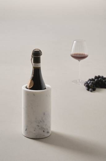 Vinkylare av marmor. Vinkylaren håller ditt förkylda vin eller annan dryck svalt och du slipper både vatten och is som blir lite söligt. Du kyler vinkylaren av marmor i kylskåp eller frys innan du ska servera. LOURDES är vacker på det dukade bordet. Placera gärna vinkylaren på ett underlägg då kondens kan bildas och göra märken på bordet. Marmor är en natursten och mönstret varierar alltid lite beroende på bergartens sammansättning, vilket gör varje skärbräda unik. Material: Marmor. Storlek: ø 11,5 cm, höjd 18 cm. Skötselråd: Handdisk. Torka torr med en diskhandduk. Torka omedelbart upp utspilld vätska på marmor. Undvik sura vätskor, såsom vin, citrus, vinäger etc. Skydda gärna skärbrädan med marmorolja emellanåt. Tips/råd: LOURDES är också fin att placera köksredskap i på bänken, kanske vid spisen, nära till hands.