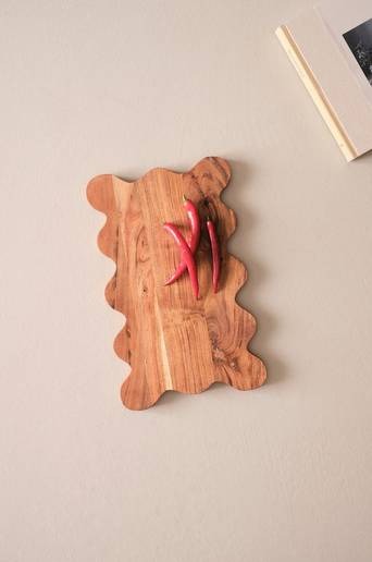 Handgjord skärbräda av FSC-certifierad acacia i naturligt vacker färg med fin ådring. VIVIA har vacker regelbunden vågform och passar fint till uppläggning och servering. Den mjuka ytan är behandlad med vegetabilisk olja. Varje skärbräda är unik då träet har naturliga variationer och de tillverkas för hand. Produkten består av trä som är avverkat från ett ansvarsfullt, kontrollerat och mer hållbart skogsbruk som tar hänsyn till människor och miljö. Licensnummer & testinstitut: Parth Overseas FSC-C166231 SGS. Material: Acaciaträ. Storlek: 25×40,5 cm, höjd 2 cm. Skötselråd: Handdisk, torkas torr. Tips/råd: Skärbrädan är ett vackert inslag på buffébordet med ostar, fräscha grönsaker eller bröd.