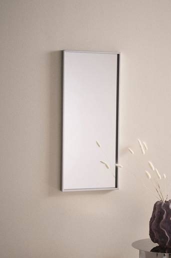 Rektangulär spegel med stilren, elegant ram av järn med matt finish. Denna spegel har dold upphängning och kan hängas åt båda håll, både stående och liggande. Material: Järn och spegelglas. Storlek: 80×35 cm, djup 3 cm. Ramens bredd 1 cm. Skötselråd: Torkas av med lätt fuktad trasa och glasputs. Tips/råd: Var kreativ och placera spegeln på en unik plats, denna spegel är mycket lättplacerad tack vare sin storlek och möjligheten att hänga den åt båda håll.