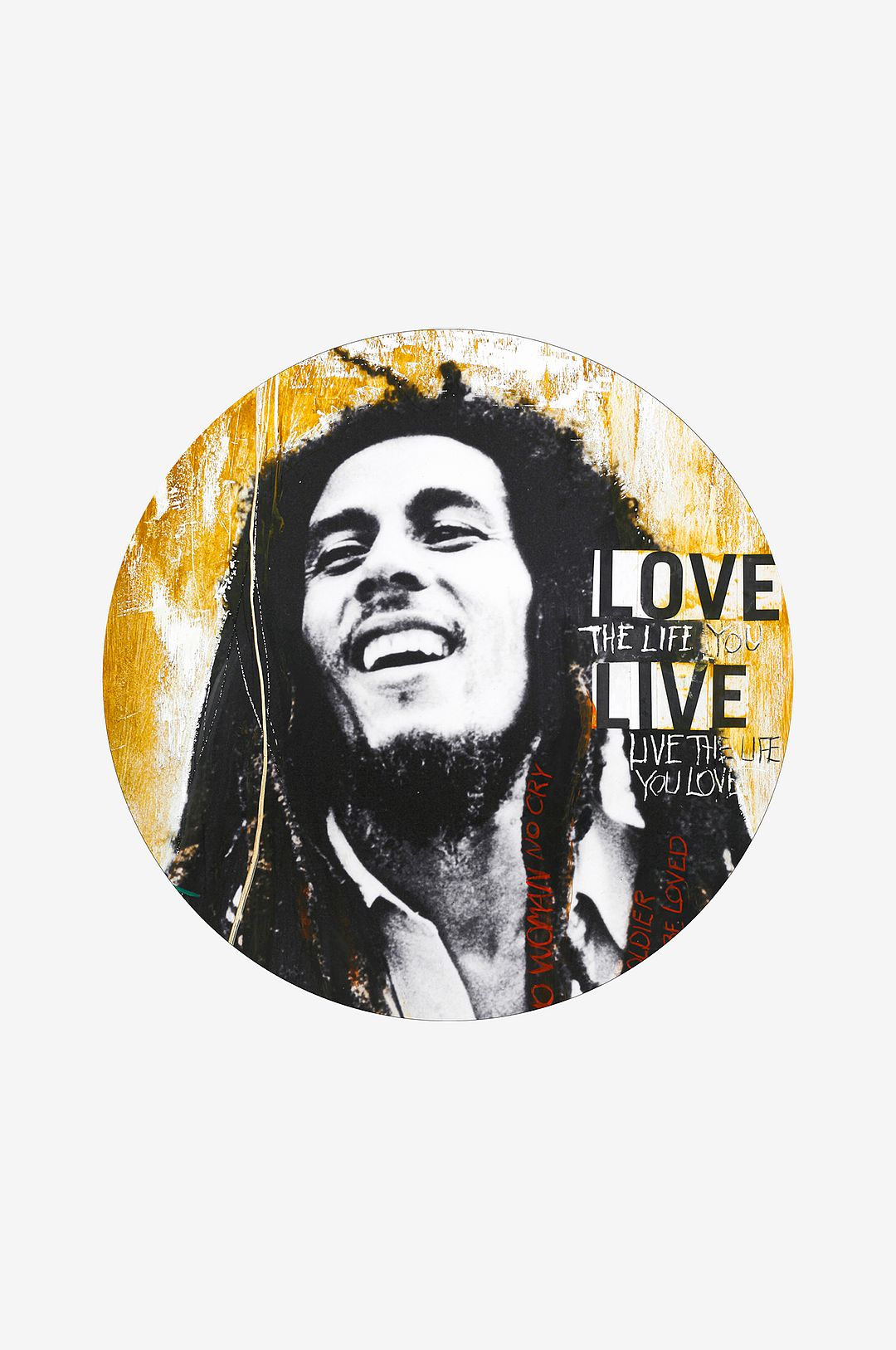 Tavla Marley by artist frånMalerifabrikken. Tryck på rund MDF-platta. När tavlan är upphängd, gör profilen på plattan att fronten ”svävar” ca 0,5 cm från väggen.